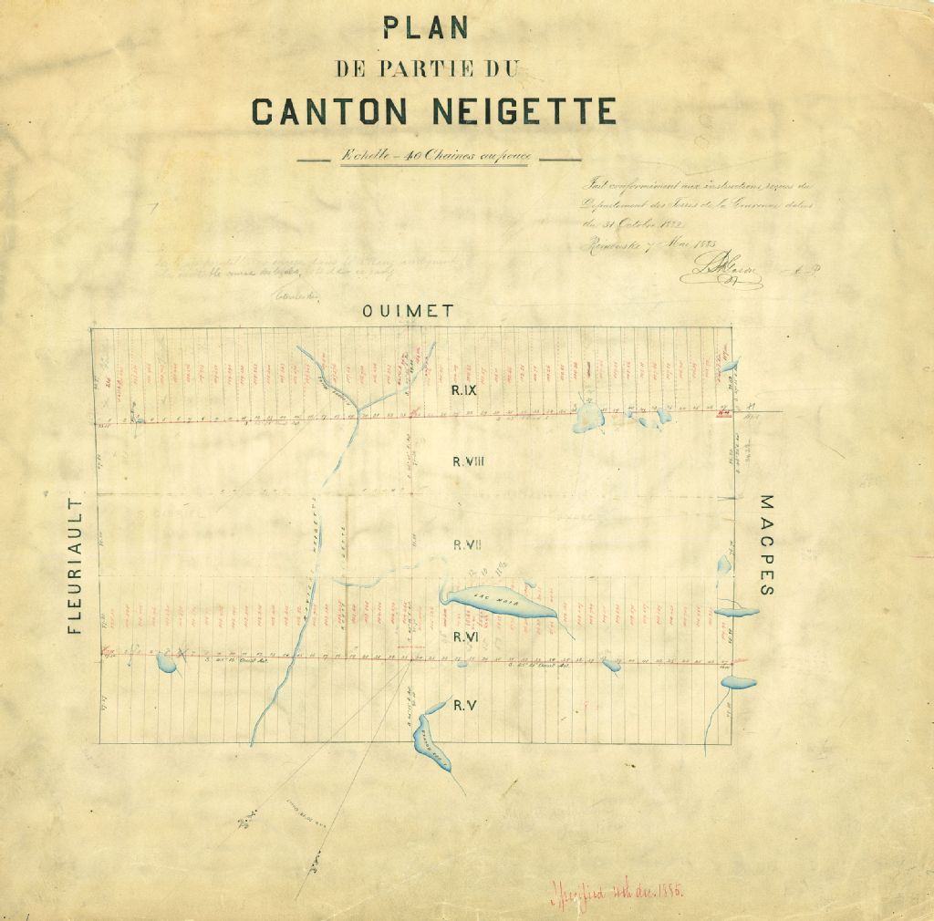 Plan de partie du canton Neigette. Fronts des rangs VI et IX et lignes centrales des rangs VI à IX
