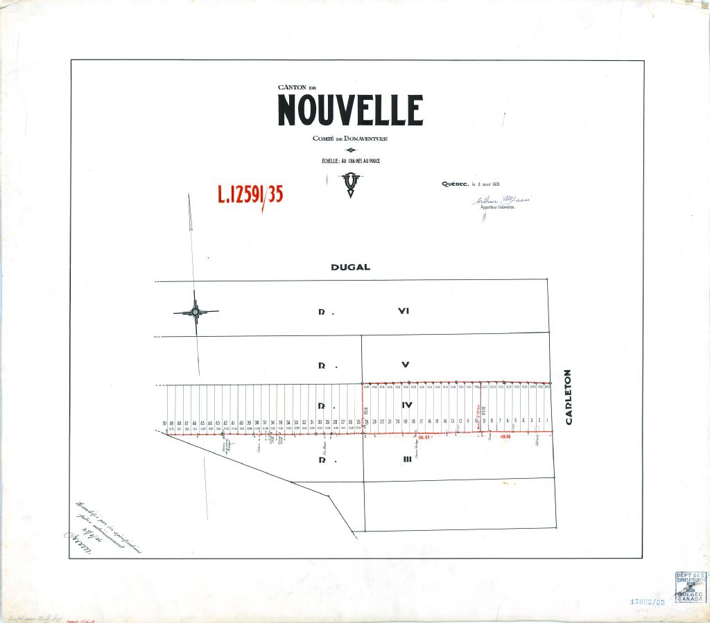 Front rang IV; partie de V (lots 1 à 24), canton Nouvelle