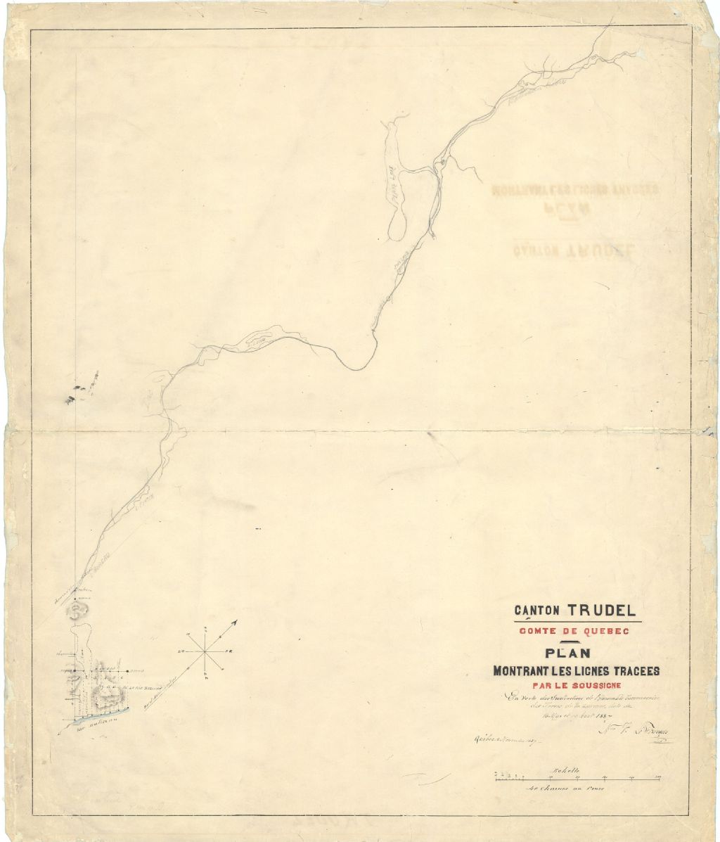 Canton Trudel, comté de Québec. Plan montrant les lignes tracées par le soussigné