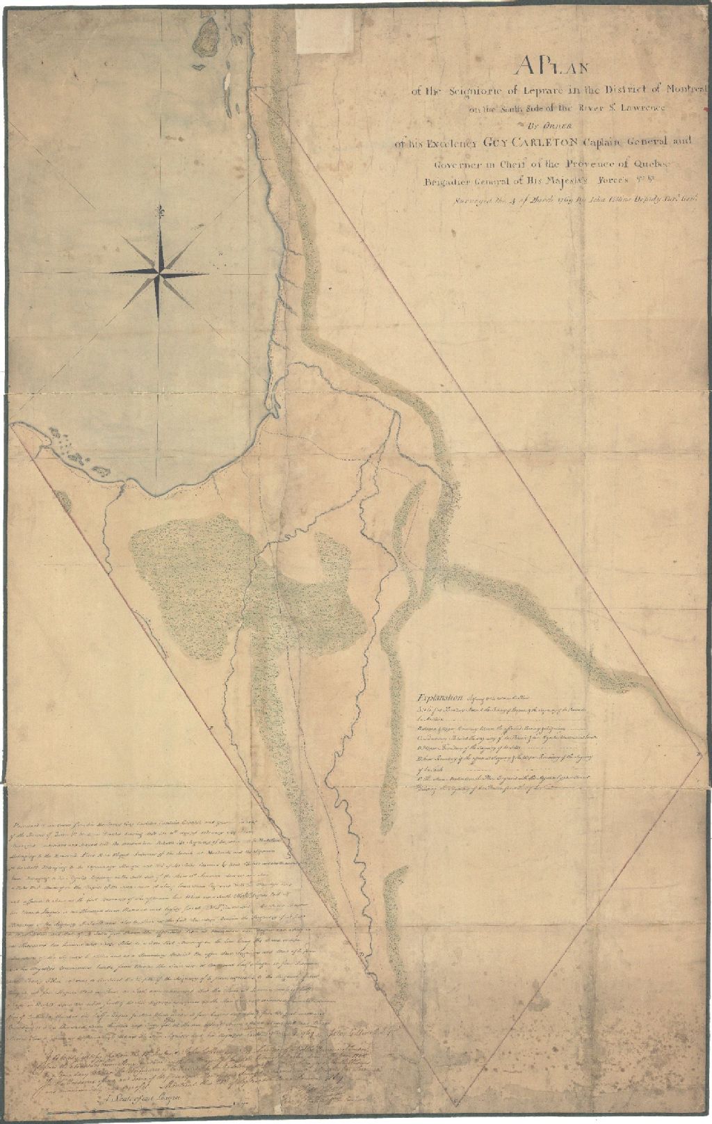 A plan of the seigniory of Leprare in the district of Montreal on the south side of the River St. Lawrence by order of his Excelency Guy Carleton Captain General and Governer in Cheif of the Province of Quebec [...]
