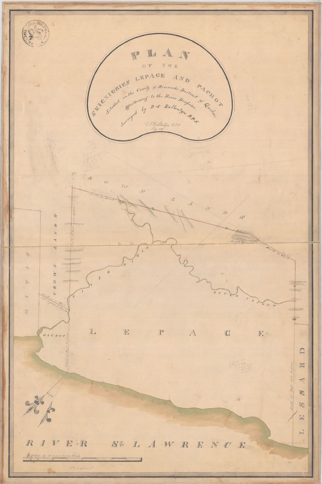 Plan of the seigniories Lepage and Pachot [... appartening to the heirs Drapeau ...]