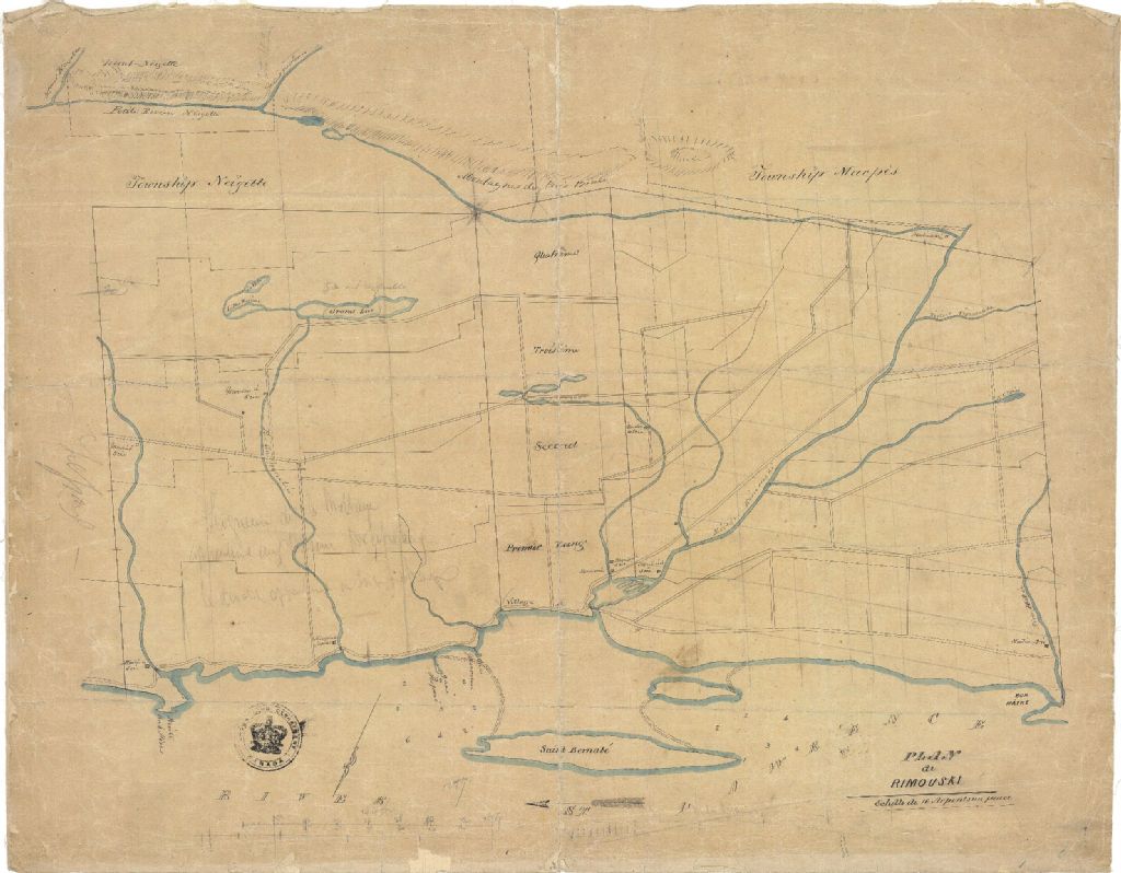 Sur ce plan d'une partie de la seigneurie de Rimouski figurent une partie du fleuve Saint-Laurent, la rivière Rimouski, l'île Saint-Barnabé, la rivière Hâtée, le lac Desrosiers, le lac Noir, la petite rivière Neigette, le lac Croisé, la rivière Rigoumabe ou Rigoumaba et le quai Gauvreau. On y retrouve également la division des rangs, le village, les moulins à scie, le moulin à farine, la tannerie, les ponts, les quais, les chemins, les lacs, le relief et la profondeur de l'eau
