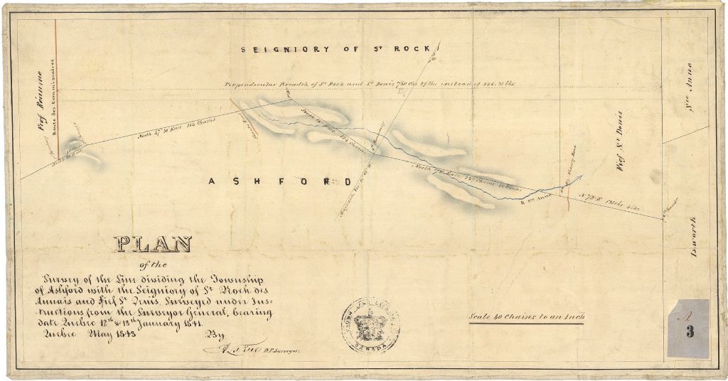 Plan of the survey of the line dissiding the Township of Ashford with the seigniory of St. Roch des Aunais and fief St. Denis
