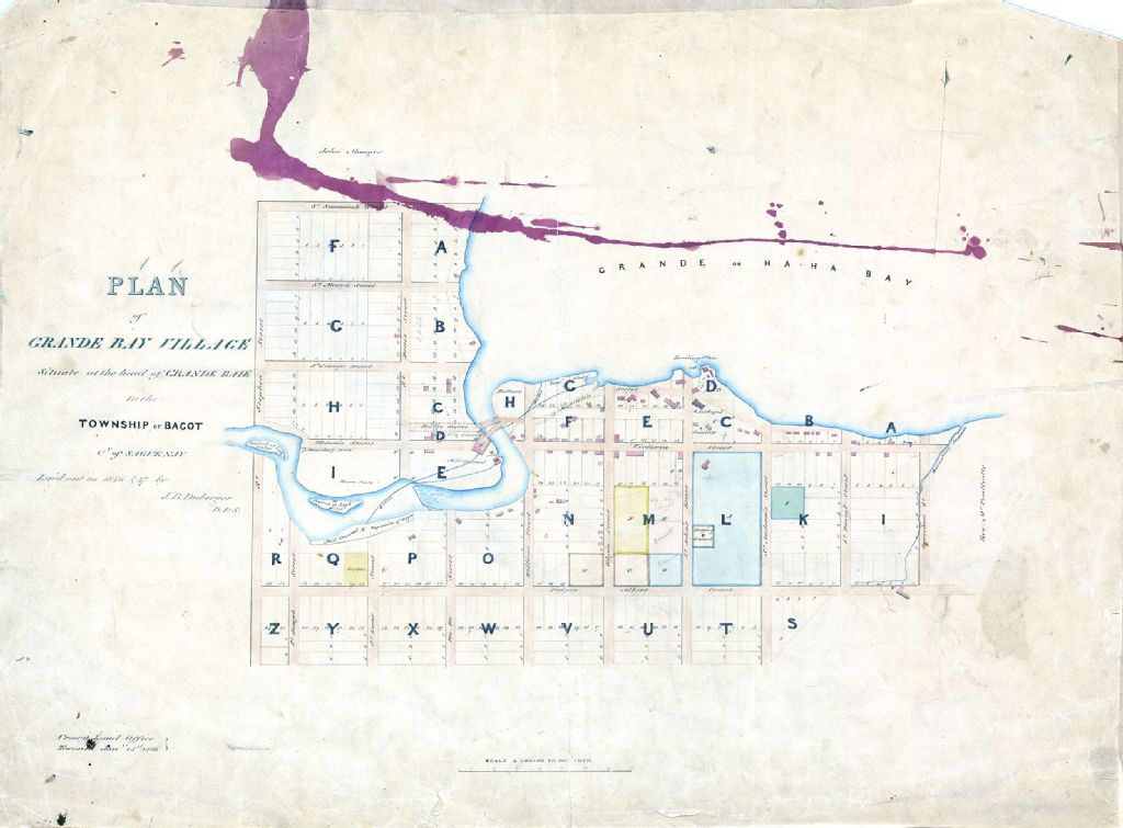 Plan of Grande Bay village situate at the head of Grande Baie in the township of Bagot. County of Saguenay.