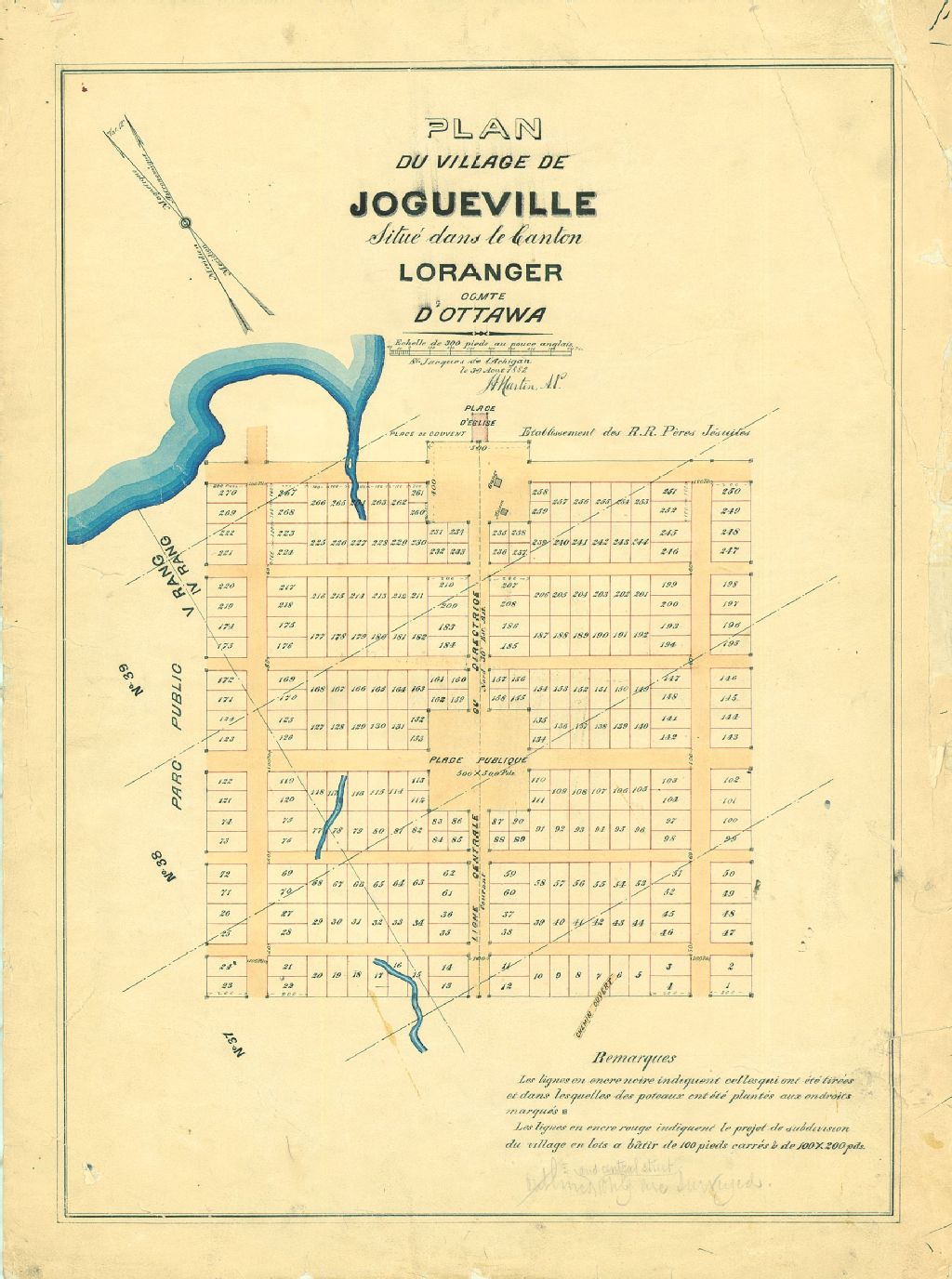 Plan du village de Jogueville situé dans le canton Loranger. Comté d'Ottawa.