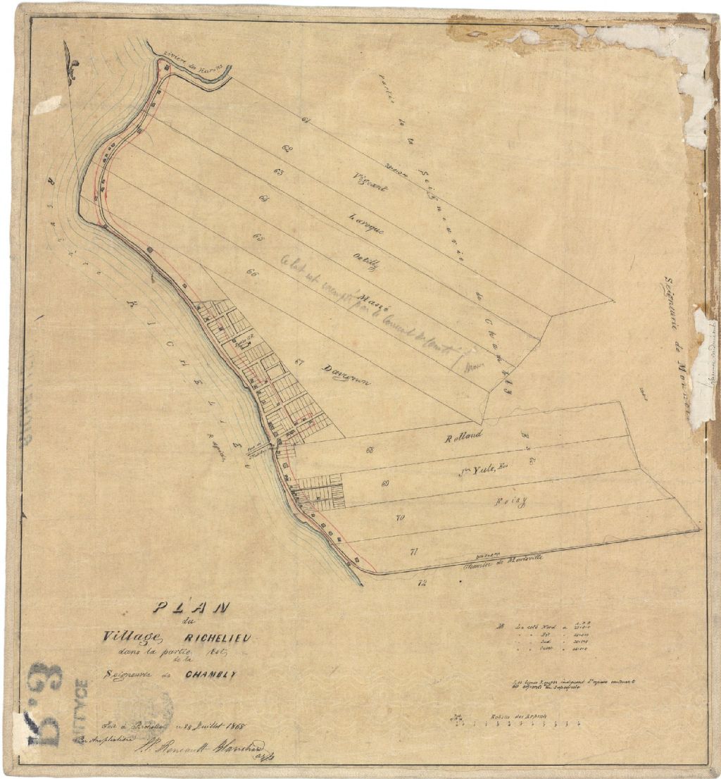 Plan du village de Richelieu dans la partie est de la seigneurie de Chambly-Est.