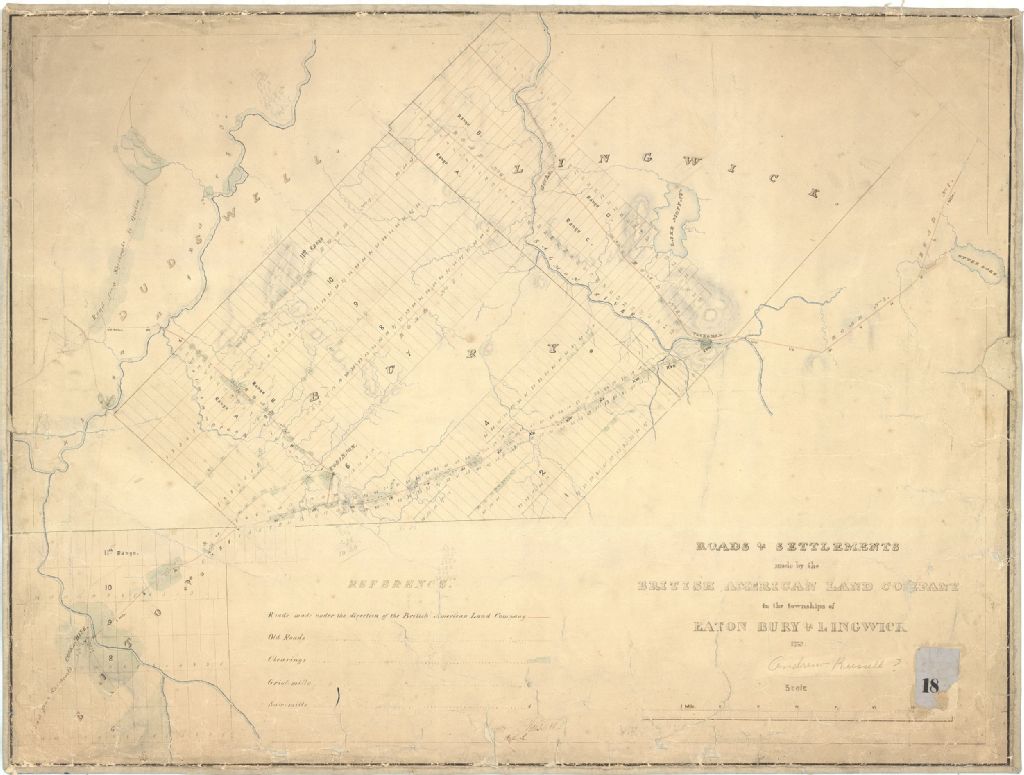 Roads and settlements made by the British American Land Co. in the township of Eaton, Bury and Lingwick