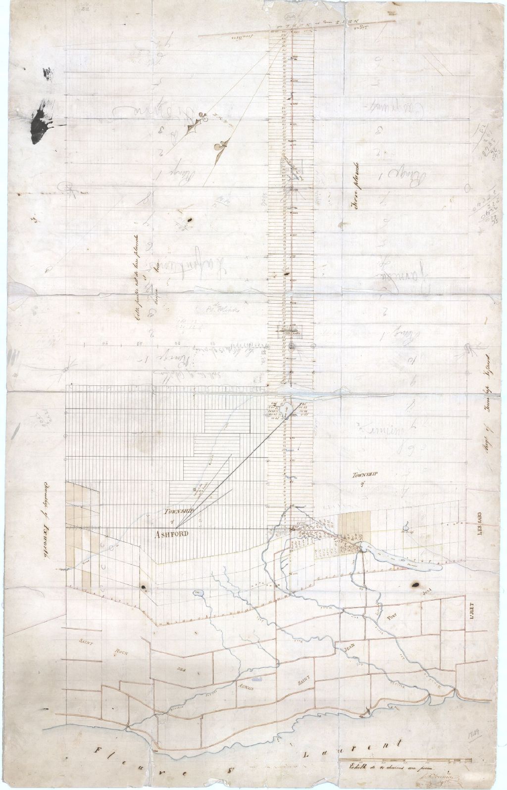 Sur ce plan du chemin Elgin figurent les seigneuries de la Grande-Anse et de Port-Joly, les cantons Ashford et Fournier, une partie du fleuve Saint-Laurent, la rivière Ferrée, la rivière Port Joli, la rivière Trois Saumons, la rivière Ouelle et le lac Trois Saumons. On y retrouve également les églises, les moulins, les bâtiments, les chemins ainsi que le numéro et la dimension des lots
