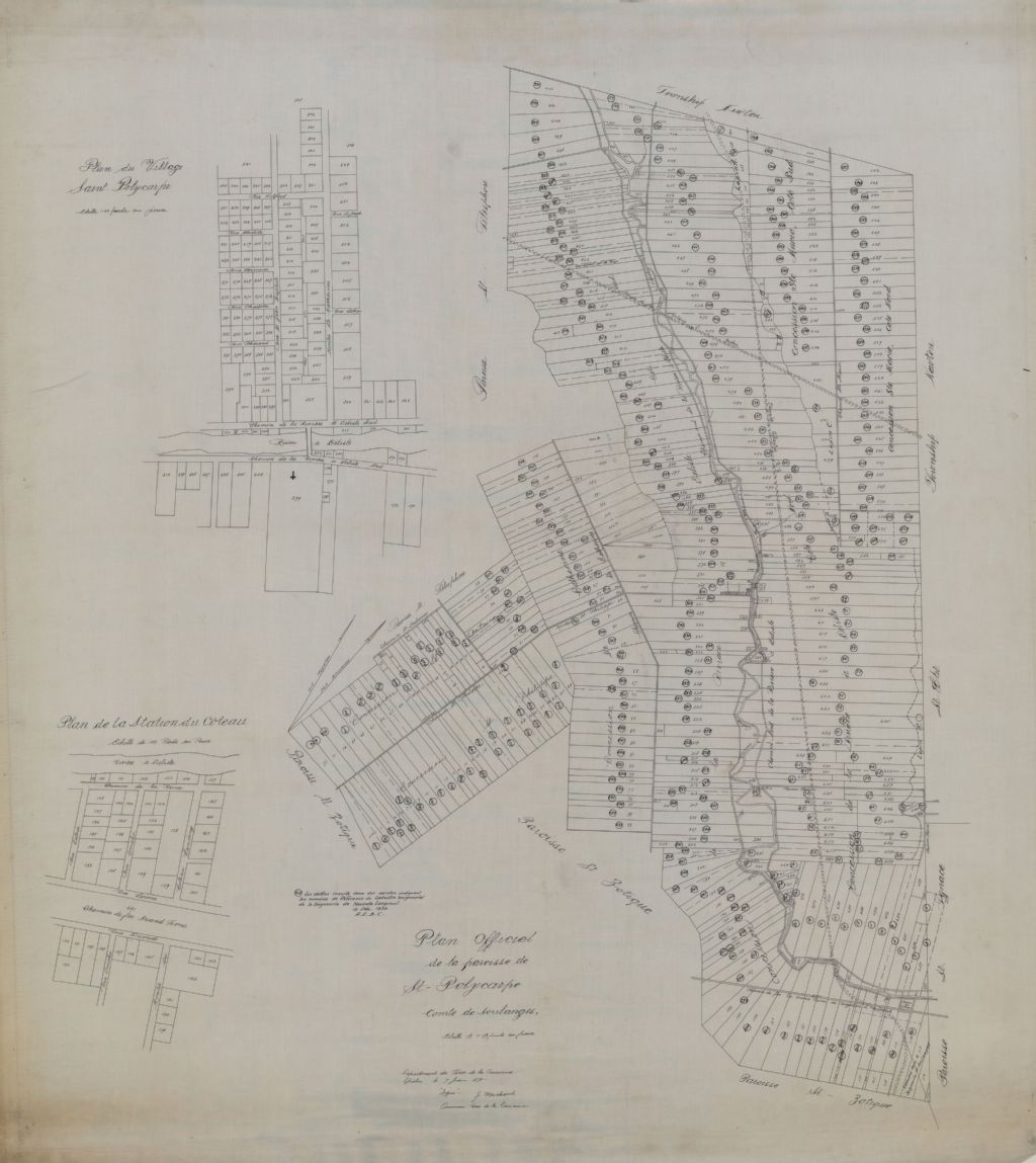 Plan officiel de la paroisse de Saint-Polycarpe, comté de Soulanges [et] plan de la station du Côteau [et] Plan du village Saint-Polycarpe
