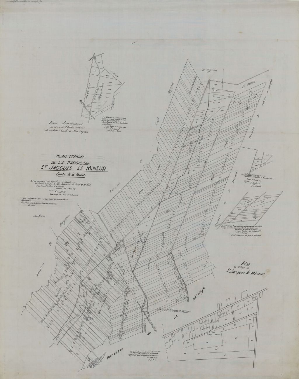 Plan officiel de la paroisse St-Jacques-Le-Mineur, comté de la Prairie; plan du village de Saint-Jacques le Mineur
