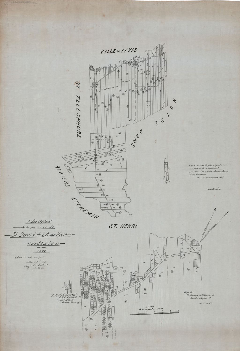 Plan officiel de la paroisse de Saint-David de l'Auberivière [et] plan du village.