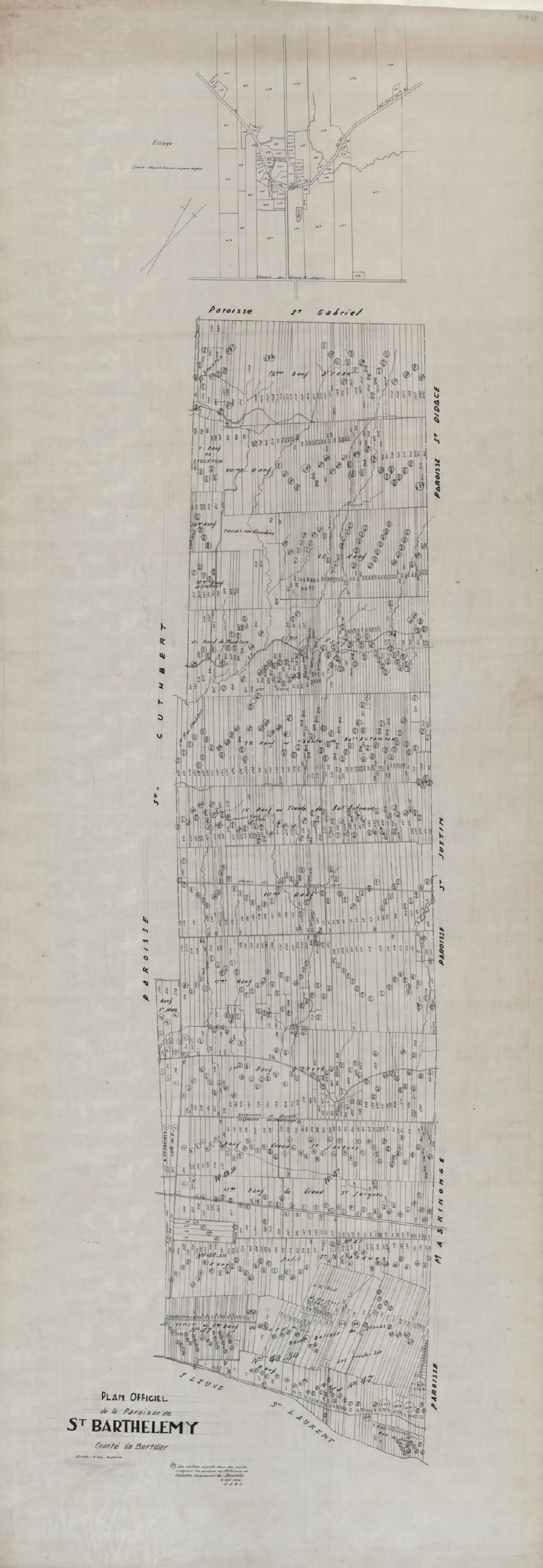 Plan officiel de la paroisse de Saint-Barthélémy, comté de Berthier [et] Plan du village.