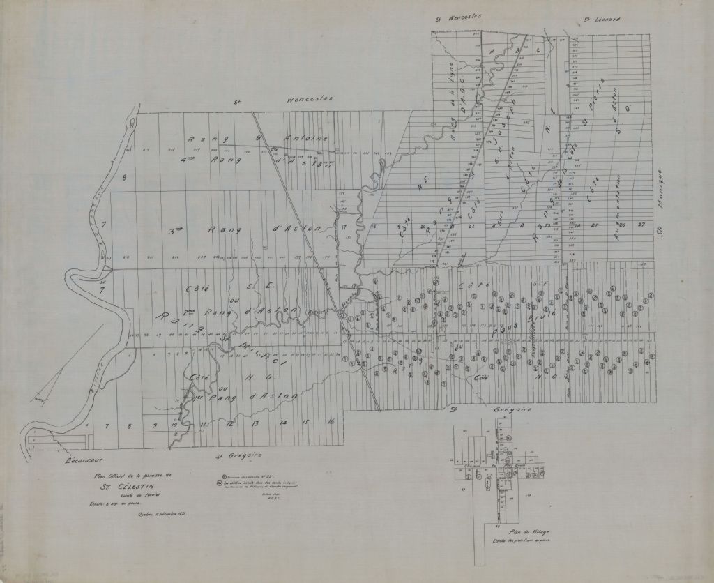 Plan officiel de la paroisse de Saint-Célestin, comté de Nicolet [et] Plan du village.