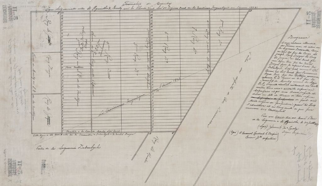 Plan d'une certaine étendue du terrain sise et située en la seigneurie Desaulle (seigneurie de Sainte-Hyacinthe)