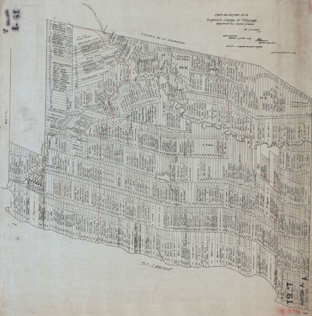 Plan d'une partie de la seigneurie Lepage et Thivierge appartenant aux Dames Drapeau