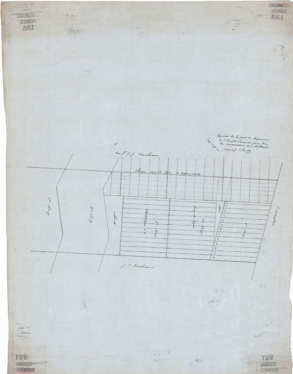 Plan de la seigneurie Sainte-Marie de l'honorable J. H. Perrault pour tirer les concessions dans Saint-Joseph