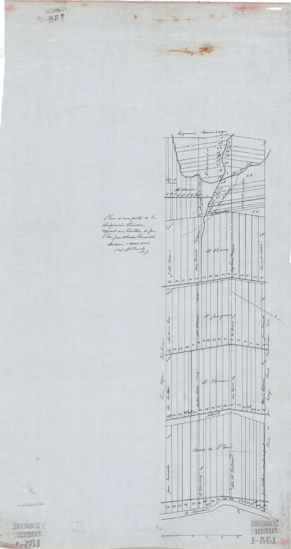 Plan d'une partie de la seigneurie Linière, appartenant aux héritiers de feu l'Honorable Jean Olivier Perreault