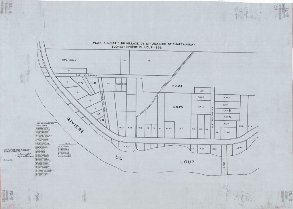 Plan figuratif du village de Saint-Joachim de Châteauguay sud-est rivière du Loup, 1852