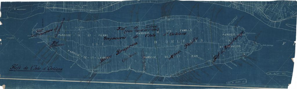 - Sur ce plan de la seigneurie de l'Île-d'Orléans figurent les paroisses Saint-Pierre, Saint-Laurent, Saint-Jean, Sainte-Famille, Saint-François et Sainte-Pétronille, une partie du fleuve Saint-Laurent, l'anse Trou Saint-Patrice, les rivières Lafleur, Maheu, Dauphin ou Bellefine, du Moulin et Pot au beurre, les chemins, le cadastre, le nom des paroisses, les toponymes, les quais, le noms des fiefs, les églises, le réseau hydrographique et environ 30 noms de propriétaires