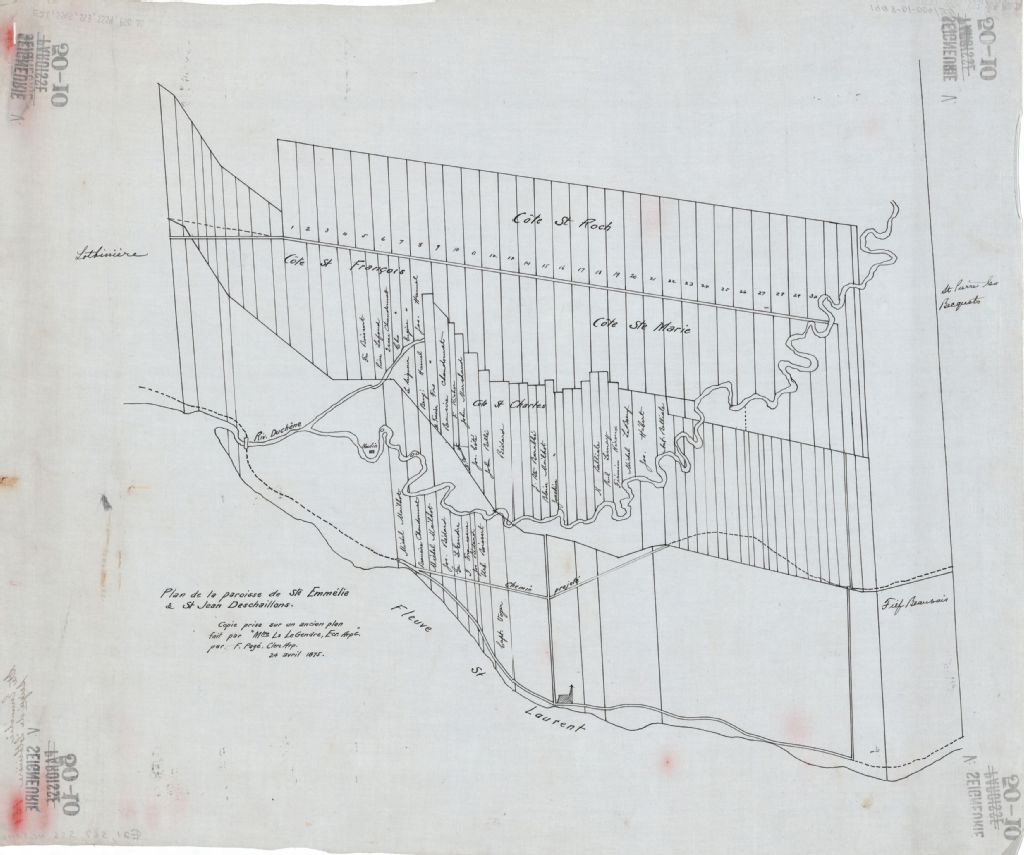Plan de la paroisse de Sainte-Emmélie et Saint-Jean-Deschaillons dans la seigneurie de Lotbinière.