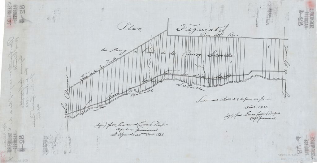 Plan figuratif du rang à l'est de la rivière Salvaille dans la seigneurie de Saint-Ours.