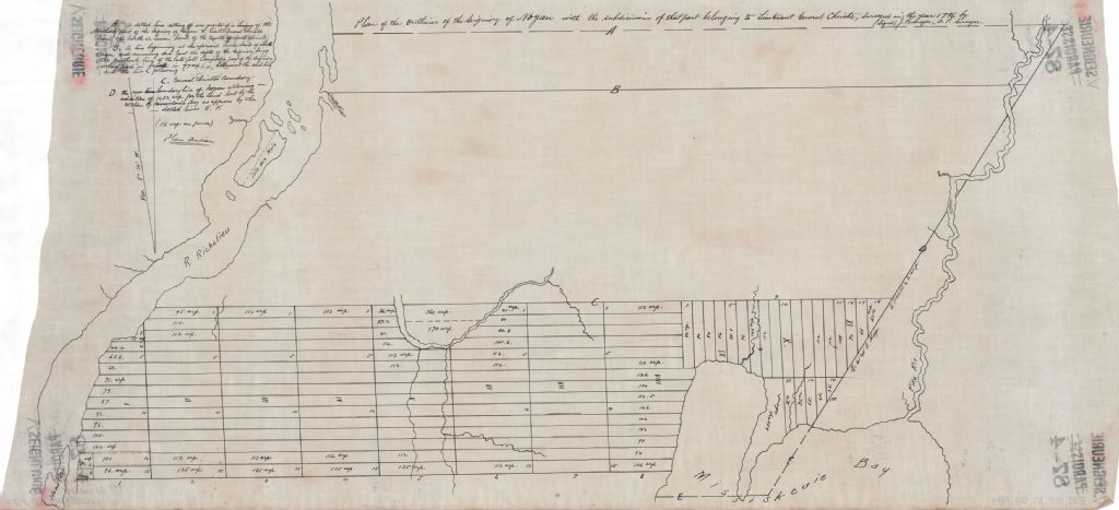 Plan of the outlaies of the Seigniory of Noyan with the subdivisions of that part belonging to lieutenant general Christie surveyed in the year 1796.