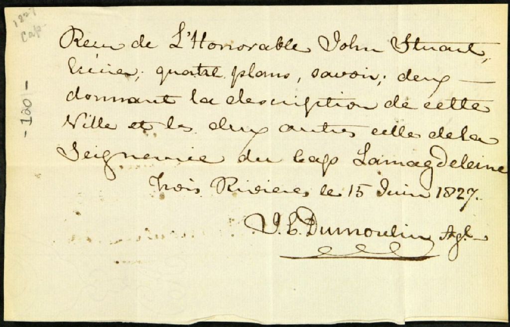 - Différents reçus entre 1827 et 1864, de monsieur Valère Guillet, agent de la seigneurie du Cap-de-la-Madeleine