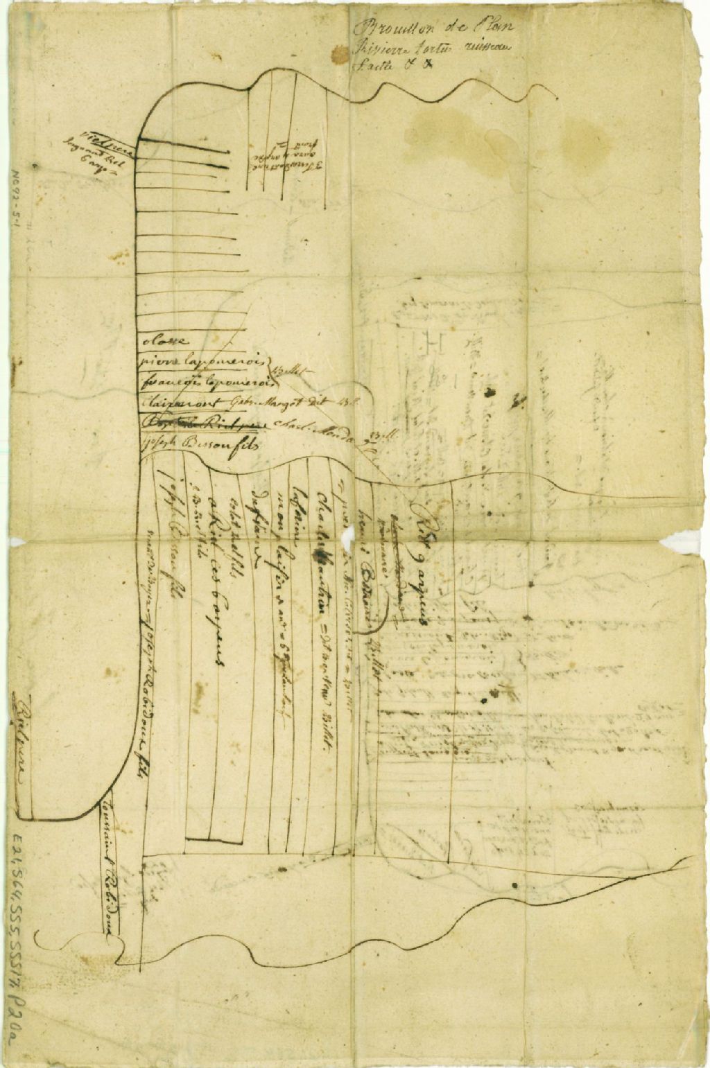 Sur ce plan d'une partie de la seigneurie Prairie-de-la-Madeleine figurent la rivière de la Tortue, le ruisseau Faille, le ruisseau Lasaline, la rivière Saint-Régis, la rivière Saint-Pierre, la dimension des lots et le nom des propriétaires