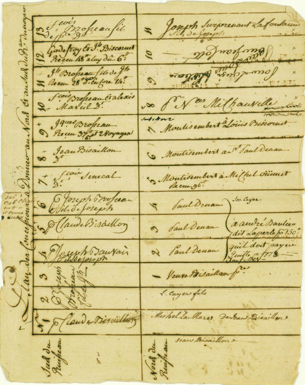 Plan des concessions à donner au Nord et au Sud du Ruisseau Du noyer, seigneurie de la Prairie-de-la-Madeleine