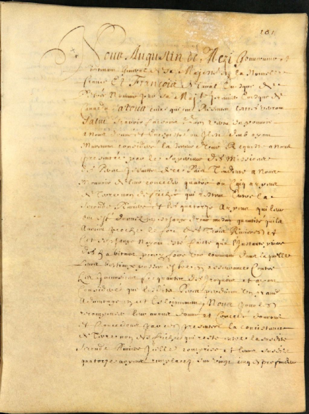 Acte de mise en possession par Charles Huault de Montmagny, chevalier de l'ordre de Saint-Jean de Jérusalem, lieutenant pour Sa Majesté en Nouvelle-France, de six cents arpents de terre au lieu appelé Trois-Rivières, à l'endroit où la Compagnie de la Nouvelle-France fait bâtir une habitation, concédés par ladite Compagnie aux Révérends Pères de la Compagnie de Jésus en date du 15 février 1634, et bornage de ladite concession par Jean Bourdon, ingénieur et arpenteur, 26 août 1637, Archives nationales à Québec, Fonds Ministère des Terres et Forêts, (03Q,E21,S64,SS5,SSS1,D2-38).