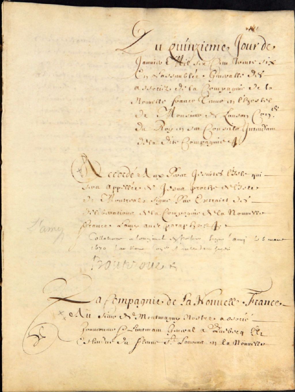 Extrait des délibérations de la Compagnie de la Nouvelle-France, laquelle accorde l'île qui sera appelée Île Jésus, près de l'île de Montréal, aux Pères Jésuites