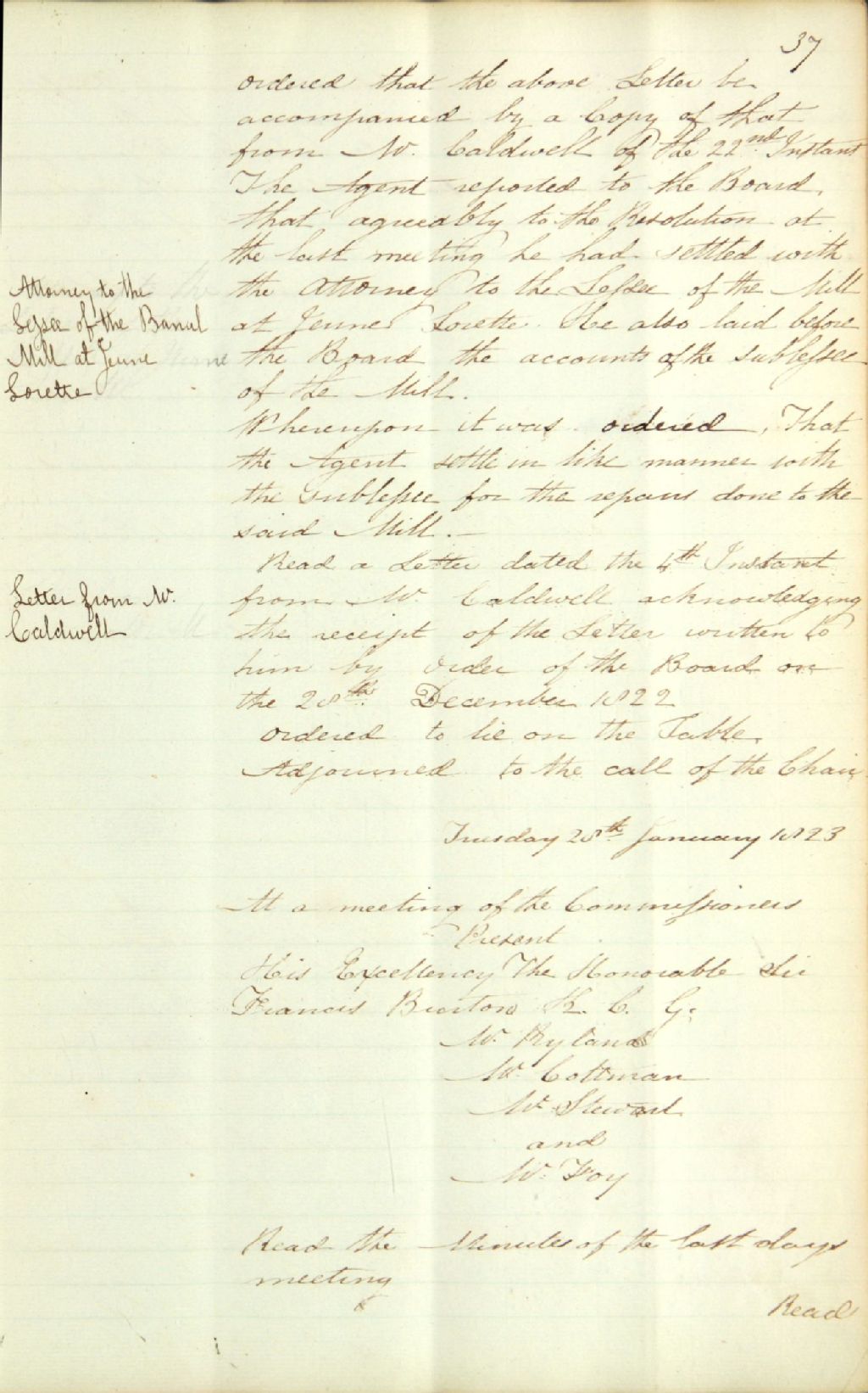 Procès-verbal d'une réunion de la commission responsable de l'administration des biens des Jésuites : au sujet d'un rapport de l'Avocat général sur un titre nouvel de concession demandé par messieurs Tourangeau et Rochette sur des emplacements joignant la ferme de la Vacherie