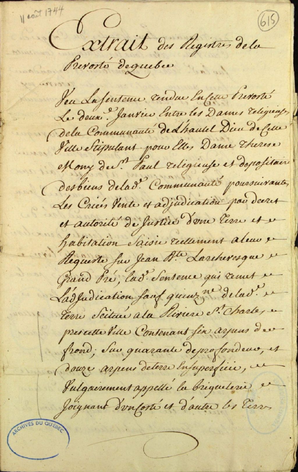 - Cette sentence est rendue en la Prévôté de Québec à la requête des Hospitalières de l'Hôtel-Dieu-de-Québec