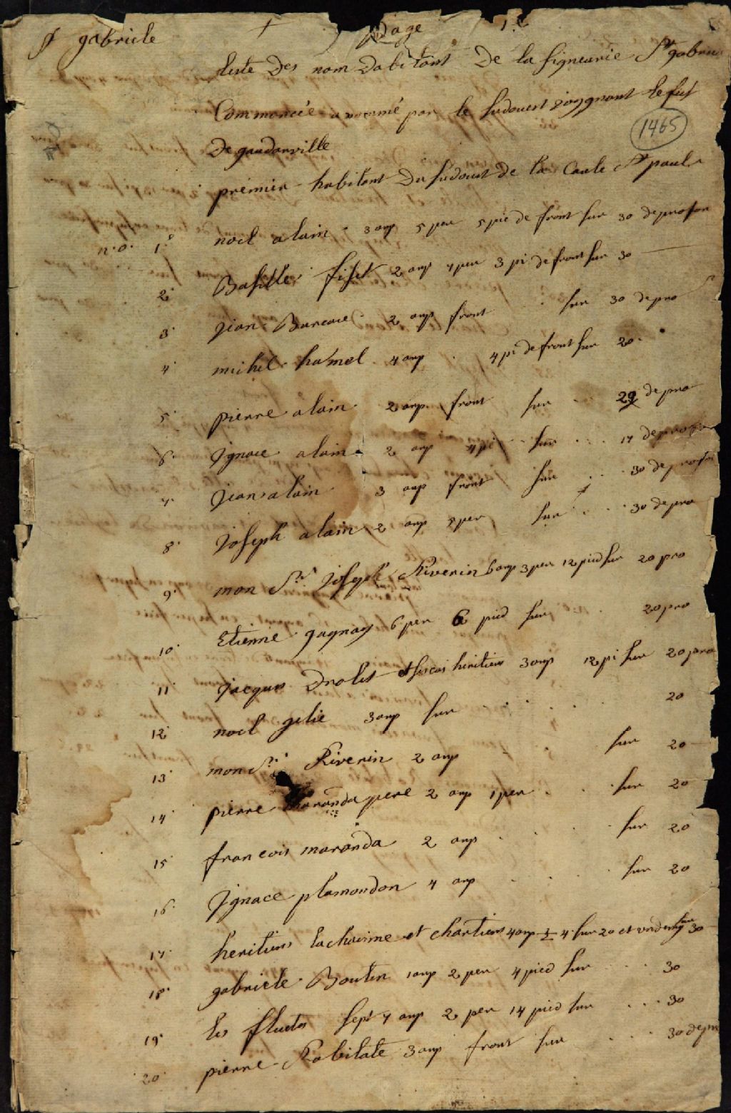 - Liste des noms des habitants de la seigneurie Saint-Gabriel, avec une table des matières