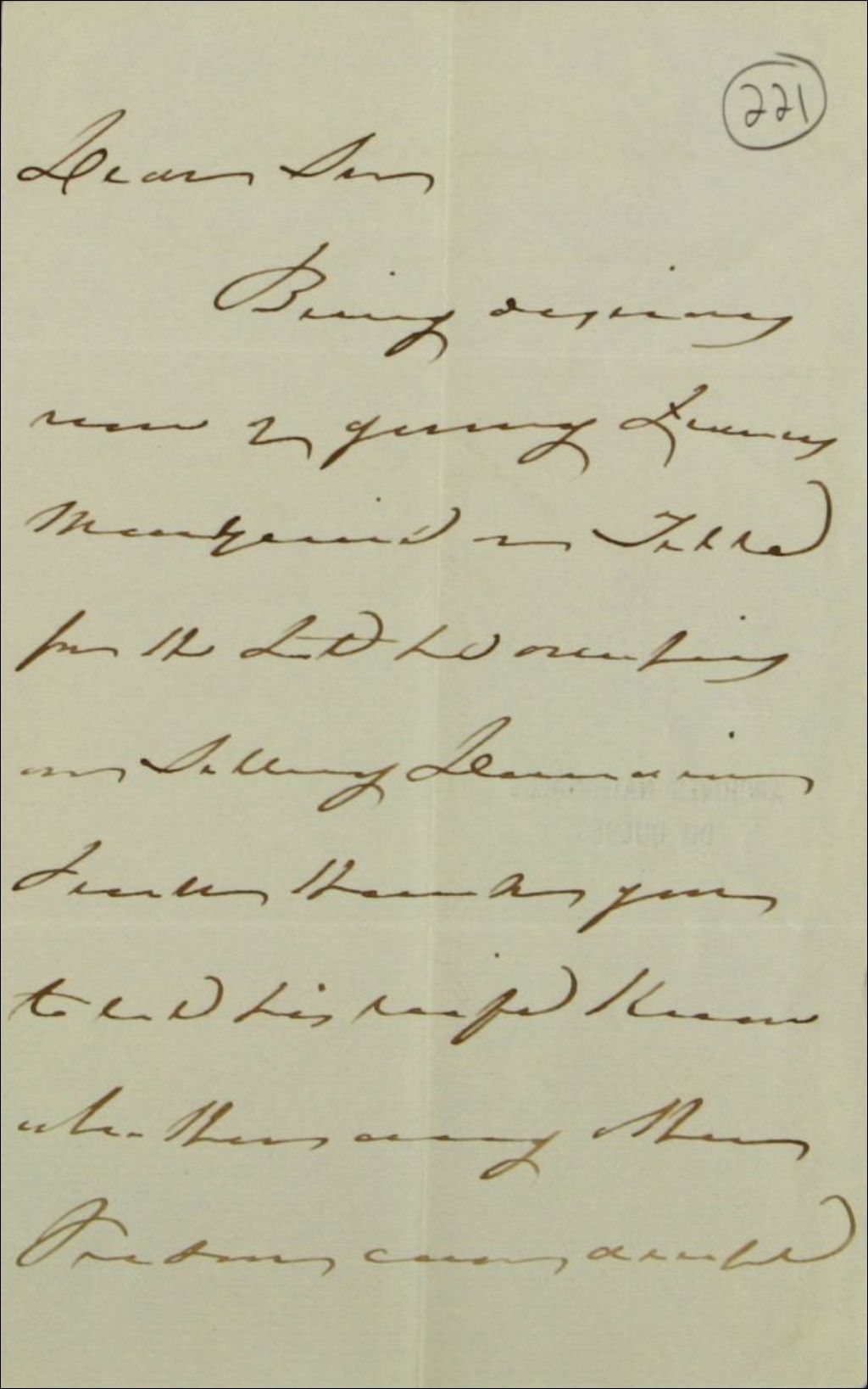 Lettre de John Stewart [à Louis Panet?] concernant un titre pour un lot du domaine de Sillery, 11 septembre - vers 1830 - vers 1845, Archives nationales à Québec, Fonds Ministère des Terres et Forêts, (03Q,E21,S64,SS5,SSS7,D221).