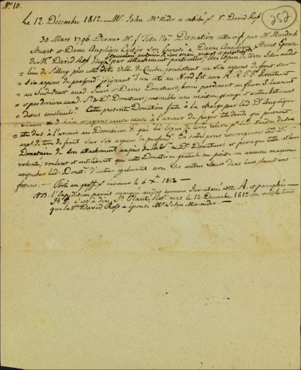 Cet extrait a été pris sur l'expédition de la donnation exhibée le 12 décembre 1812 par John McNider à Joseph planté, notaire
