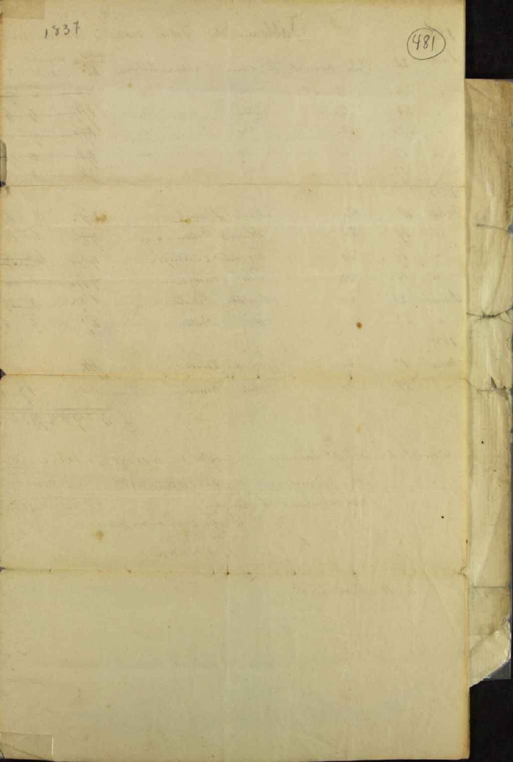 Deux tableaux des titres nouvels donnés par les censitaires du fief Monceaux, le premier produit par R. G. Belleau le 11 mai 1837, le second étant étant une copie du premier tableau annoté le 7 septembre 1863, 11 mai 1837 - 7 septembre 1863, Archives nationales à Québec, Fonds Ministère des Terres et Forêts, (03Q,E21,S64,SS5,SSS7,D481).