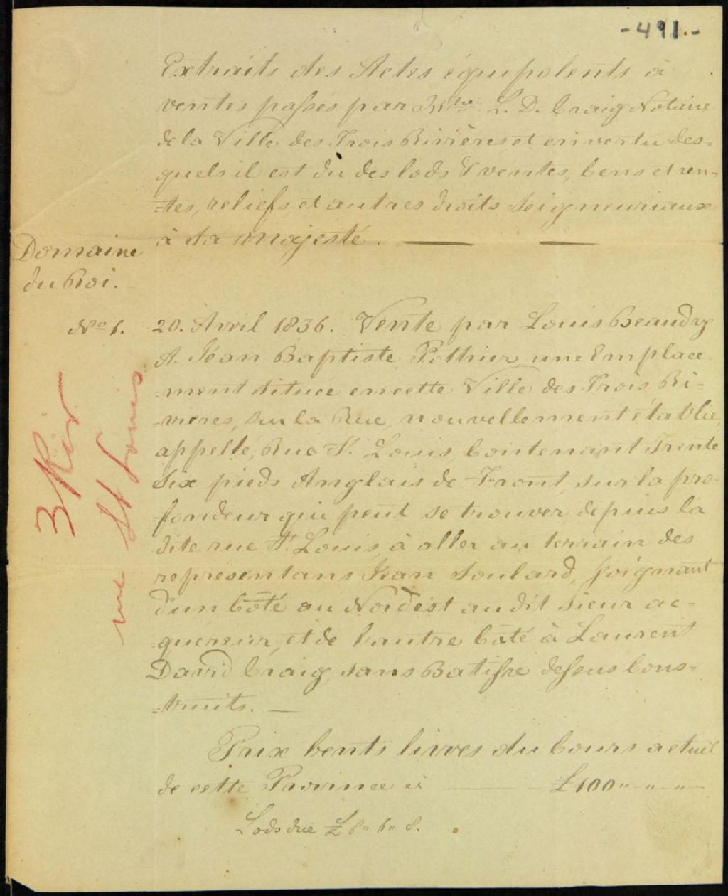 - Extraits de divers contrats passés devant L.D. Craig, notaire de la ville des Trois-Rivières, en vertu desquels il est dû à Sa Majesté des cens et rentes, lods et ventes, &c