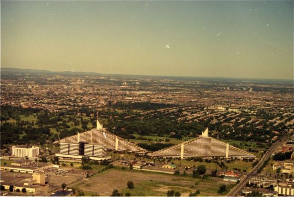Les documents montrent notamment, du côté de Montréal, le Stade olympique, le Village olympique, le Vieux-Port, le centre-ville, la tour de Radio-Canada et le Pont Jacques-Cartier.