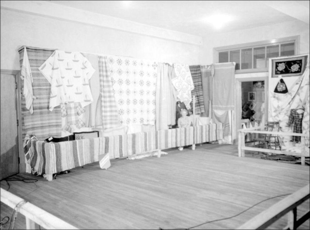 - Différentes institutions exposent leurs produits: le Cercle des fermières de Vaudreuil-Soulanges (E6,S7,SS1,P18111), l'École du meuble de Valleyfield (E6,S7,SS1,P18112 etE6,S7,SS1,P18115). Les documents (E6,S7,SS1,P18113 et E6,S7,SS1,P18114) présentent les outils et la machinerie servant aux travaux artisanaux à l'École du meuble de Valleyfield. Le dossier inclut une photo de M. Ricard, directeur de l'École du meuble de Valleyfield