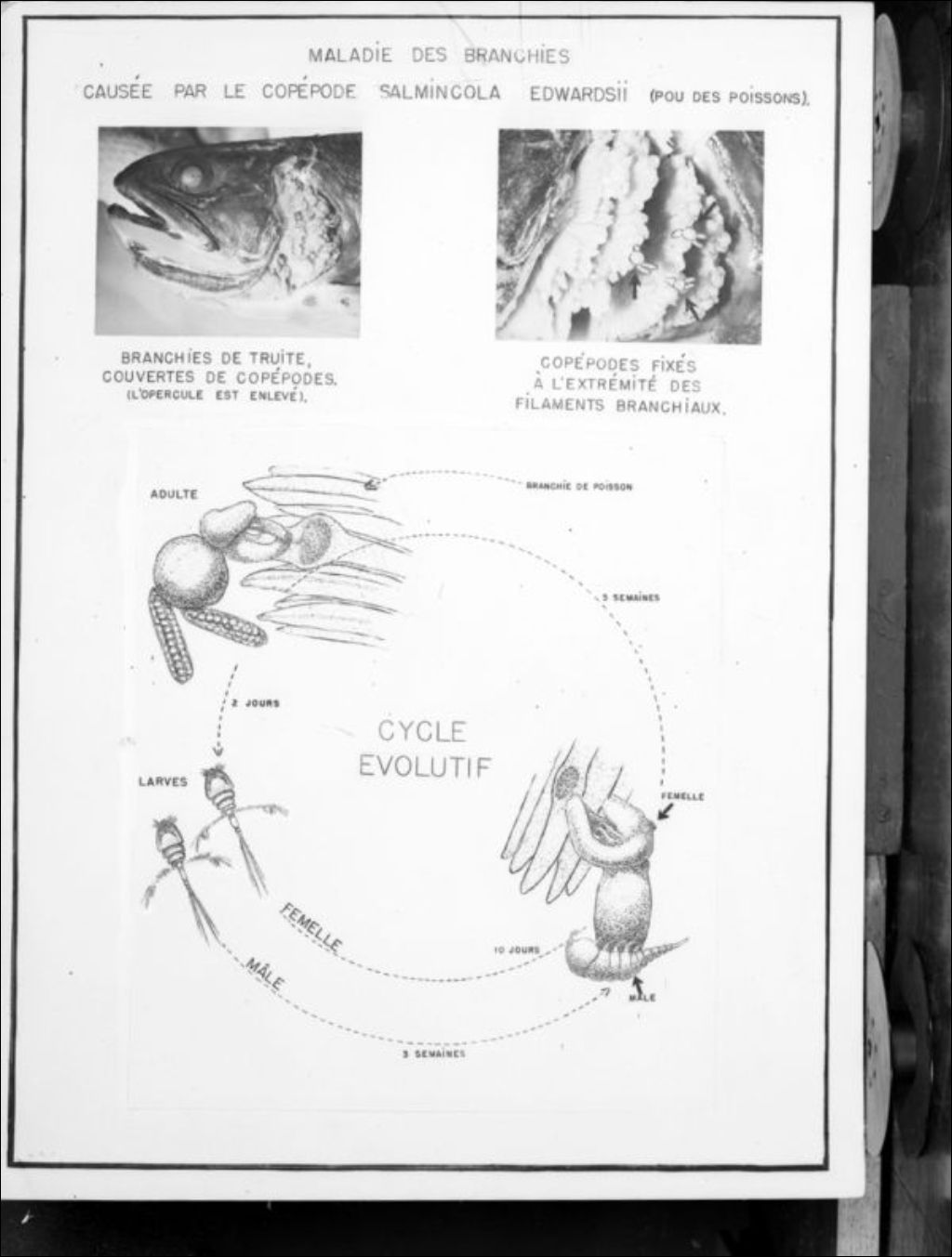 - Graphiques présentant la concentration de la ouananiche et cycle évolutif du pou des poissons. Dossier commandé par Gustave Prévost, Service de biologie