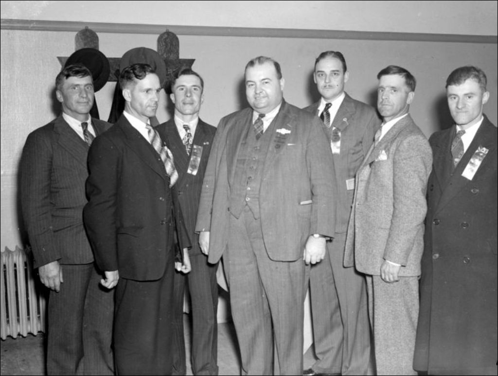 - Ce photo-reportage documente le Congrès général de l'Union catholique des cultivateurs (U.C.C.). Nous y retrouvons: Samuel Audette, officiel de l'U.C.C. et des membres de l'Union (E6,S7,SS1,P18895); Samuel Audette, J. A. Manion et Albert Laframboise, officiels de l'U.C.C., Monseigneur Joseph-Conrad Chaumont, évêque auxiliaire de Montréal, Laurent Barré, ministre de l'Agriculture et des membres de l'Union (E6,S7,SS1,P18896); les membres de l'U.C.C. présents pour l'occasion, devant l'immeuble de l'Ecole des hautes études commerciales, rue Viger à Montréal (E6,S7,SS1,P18897 à E6,S7,SS1,P18898); Samuel Audette, J. A. Manion, Albert Laframboise, officiels de l'U.C.C. (E6,S7,SS1,P18899); MM. Léon, Lebel et Chalifour, aumôniers de l'U.C.C. (E6,S7,SS1,P18900)