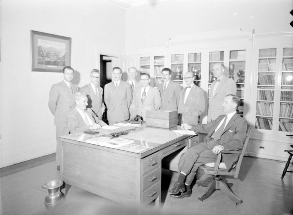 - Le dossier porte sur les installations et les étudiants de l'École de laiterie située à Saint-Hyacinthe. Le personnel de l'École est réuni autour d'un bureau (E6,S7,SS1,P200293, E6,S7,SS1,P200294 et E6,S7,SS1,P200308). Nous apercevons les meules de fromage (E6,S7,SS1,P200298 et E6,S7,SS1,P200305) de types Richelieu, Gruyère, Gouda, Cheddar, fondu et Bleu de Maska (E6,S7,SS1,P200311). Nous remarquons les apprentis et les professeurs qui travaillent au laboratoire (E6,S7,SS1,P200312, E6,S7,SS1,P200314, E6,S7,SS1,P200330 à E6,S7,SS1,P200332, E6,S7,SS1,P200336, E6,S7,SS1,P200337, E6,S7,SS1,P200340, E6,S7,SS1,P200341, E6,S7,SS1,P200350 et E6,S7,SS1,P200352). J.-P. Julien transcrit un texte à la machine à écrire au sujet de la crème glacée (E6,S7,SS1,P200315). À l'étable, les étudiants traient les vaches (E6,S7,SS1,P200319). Nous remarquons les bidons de lait (E6,S7,SS1,P200321, E6,S7,Ss1,P200322 et E6,S7,SS1,P200325). Les étudiants sont en classe (E6,S7,SS1,P200326), à la bibliothèque (E6,S7,SS1,P200329) et au cours de dessin (E6,S7,SS1,P200339). Nous remarquons un champs (E6,S7,SS1,P200334 et E6,S7,SS1,P200345) où les vaches sont en pâturage (E6,S7,Ss1,P200335). Nous voyons un cliché d'une partie d'une mosaïque sur l'École (E6,S7,SS1,P200342)