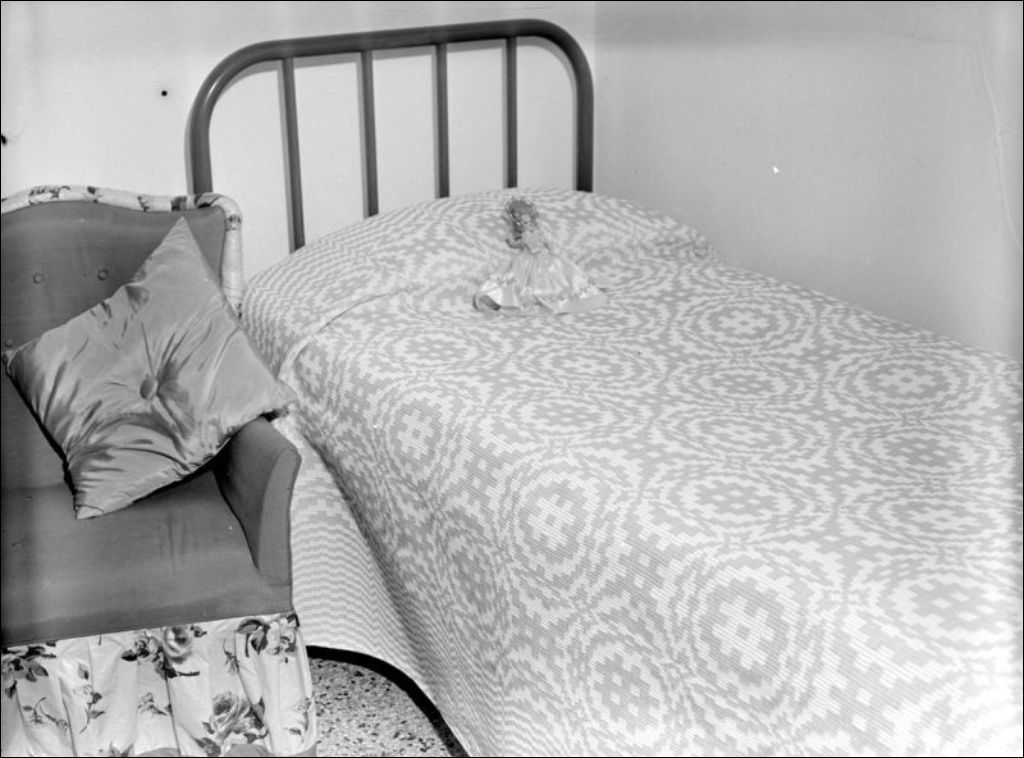 - Il s'agit de produits tissés par les étudiantes de l'École supérieure d'enseignement ménager des Soeurs de Sainte-Anne. Nous apercevons une couverture sur un lit (E6,S7,SS1,P200767), des ceintures fléchées (E6,S7,SS1,P200768), un étoffe sur la machine à tisser (E6,S7,SS1,P200773), des serviettes et un livre intitulé «La Ferme» (E6,S7,SS1,P200772). Une étudiante est dans sa chambre (E6,S7,SS1,P200771)