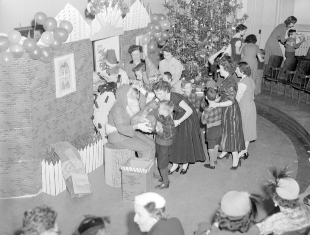 - Dépouillement de l'arbre de Noël à la Crèche Saint-Paul des Soeurs de Miséricorde située sur le boulevard Gouin à Montréal. Le Père Noël remet les cadeaux aux enfants