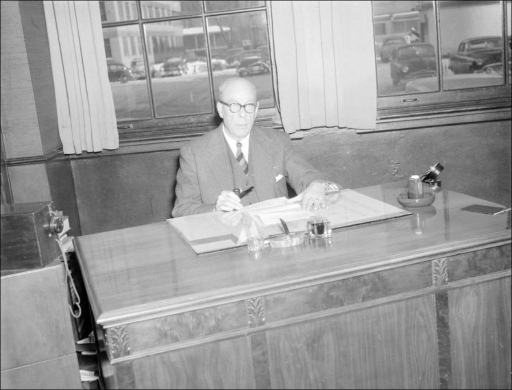 J. P. Garceau. Bureau de l'Ing. Club, 1954, Archives nationales à Montréal, Fonds Ministère de la Culture et des Communications, (06M,E6,S7,SS1,D201214-201214), Photographe non identifié.