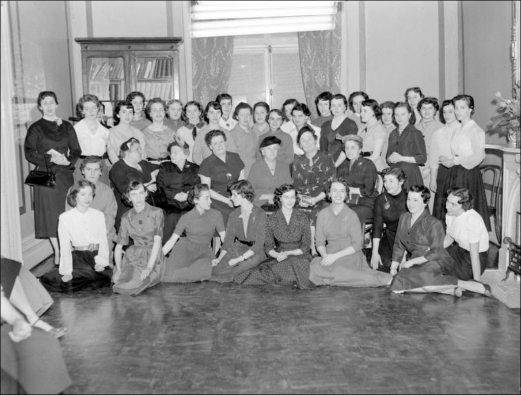 Mademoiselle Cloutier. Secrétariat provincial. Fête à l'occasion de Mademoiselle Leblanc, 1954, Archives nationales à Montréal, Fonds Ministère de la Culture et des Communications, (06M,E6,S7,SS1,D201557-201558), Photographe non identifié.