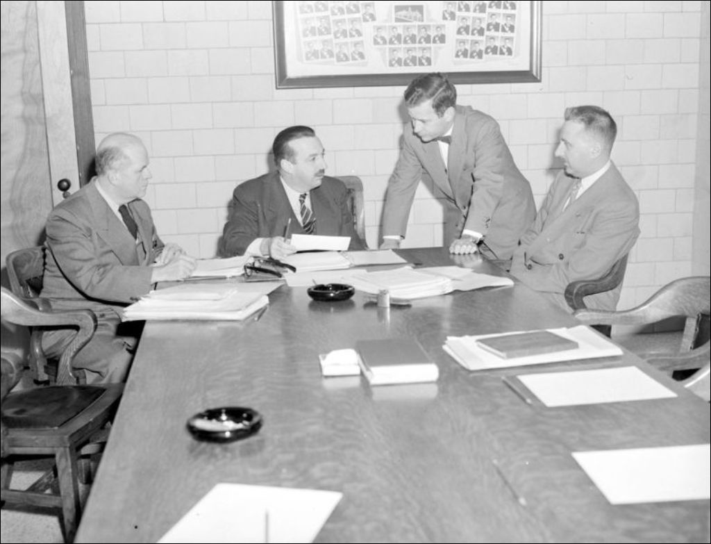 L. Coderre. Comité administratif. Delâge, 1954, Archives nationales à Montréal, Fonds Ministère de la Culture et des Communications, (06M,E6,S7,SS1,D201571-201572), Photographe non identifié.
