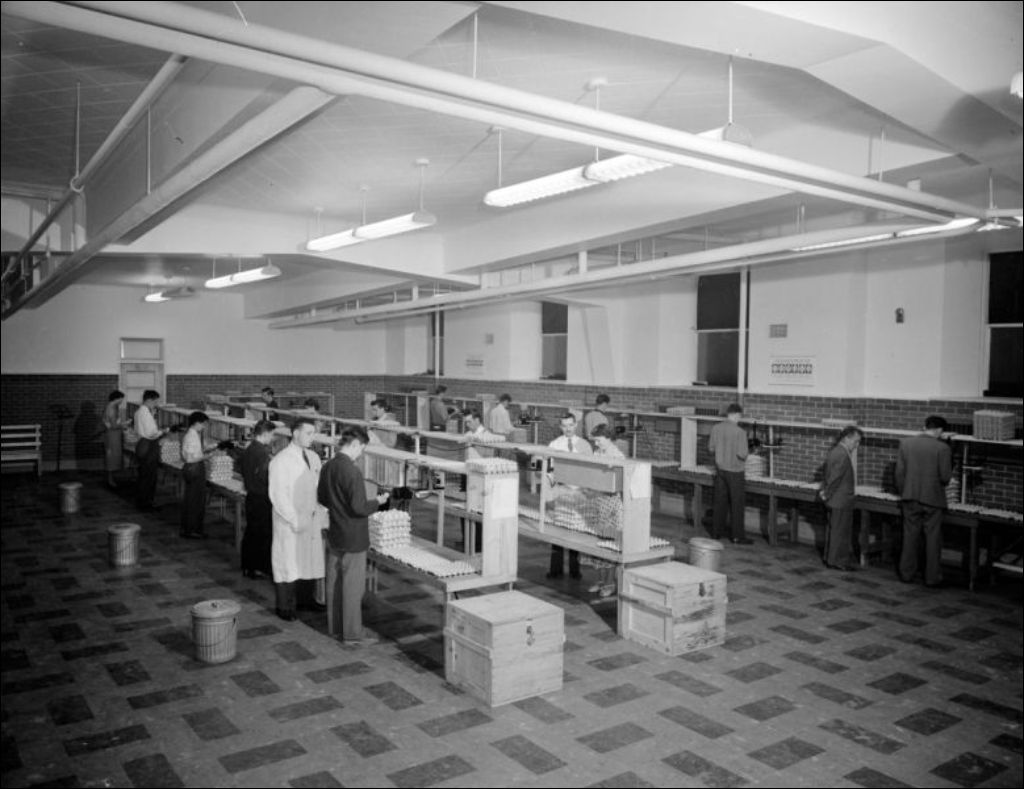 Alb. Clément. Médecine vétérinaire. Mirage des oeufs, 1954, Archives nationales à Montréal, Fonds Ministère de la Culture et des Communications, (06M,E6,S7,SS1,D202633-202643), Photographe non identifié.