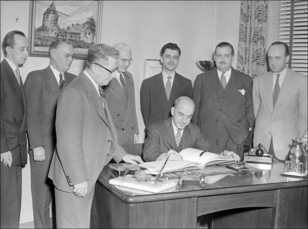 Il s'agit de la signature de registres par les invités lors de la visite de l'Institut agricole